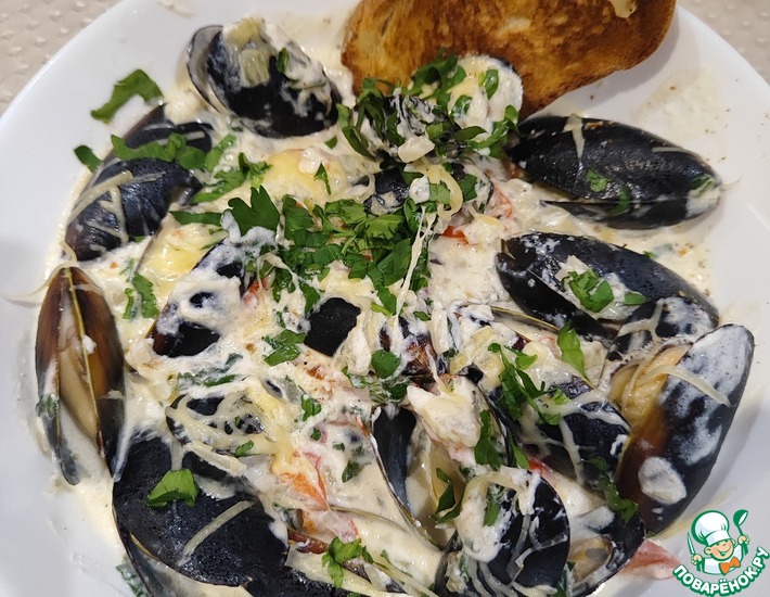 Рецепт «Мидии в сливочно-чесночном соусе с овощами»: